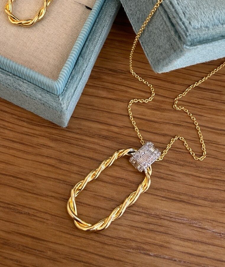Gargantilla en plata de primera ley 925, bicolor bañada en rodio y oro amarillo de 18 kt.