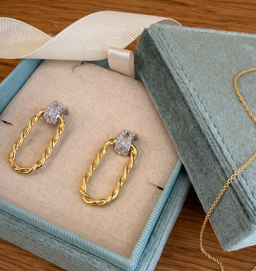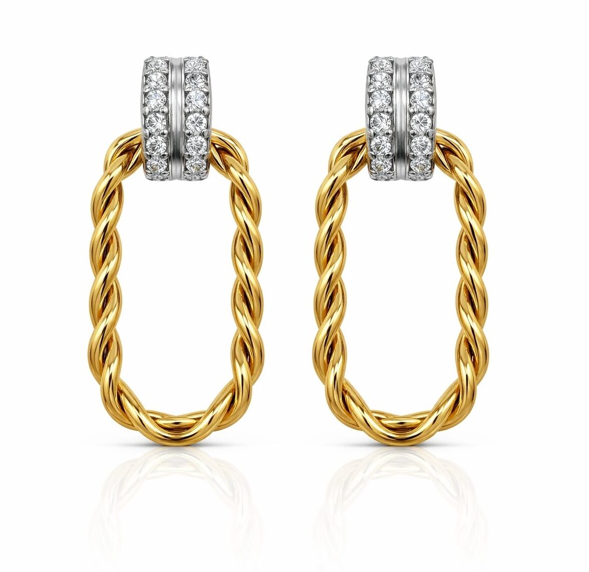 Pendientes en plata de primera ley 925, bicolor bañados en rodio y oro amarillo de 18 kt.